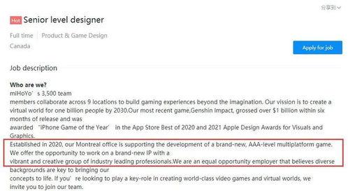首先,让我们来聊聊米哈游的新游戏预告。据可靠消息,这款新游戏将是一款融合了奇幻元素和冒险精神的MMORPG。从官方发布的预告片来看,游戏的画面精美绝伦,仿佛置身于一个真实存在的奇幻世界。
